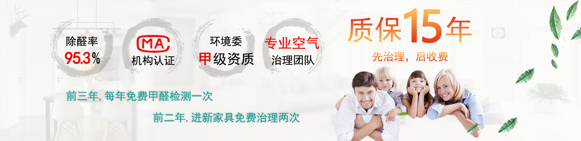 確保工程質(zhì)量達(dá)到國家室內(nèi)空氣質(zhì)量標(biāo)準(zhǔn)GB/T18883-2002如驗(yàn)收不合格須無條件免費(fèi)返工至工程達(dá)標(biāo)質(zhì)量承保期1年,長期跟蹤空氣質(zhì)量。